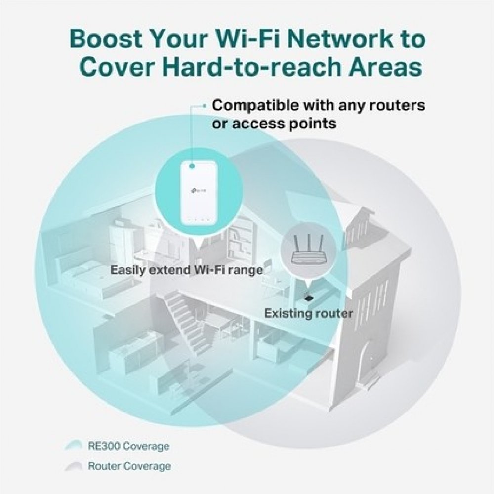 RE300 se bezdrátově připojuje k vašemu routeru, posiluje a rozšiřuje svůj signál do oblastí, kam sám nedosáhne. S rychlostí až 300 Mb/s v pásmu 2,4 GHz a 867 Mbps v pásmu 5 GHz *1 šiřte silný, rychlý Wi-Fi signál do každé místnosti a rozlučte se s mrtvými zónami.