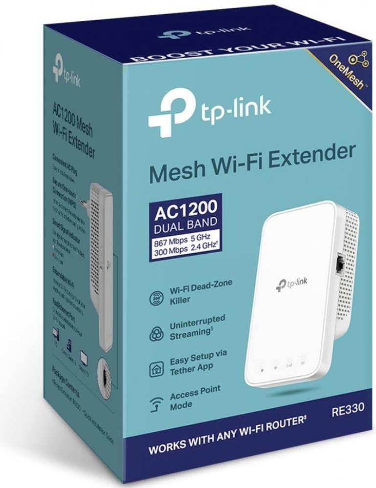 WiFi extender TP-Link RE330 AP/Extender/Repeater, 1x LAN, AC1200 300Mbps 2,4GHz a 867Mbps 5GHz, OneMesh