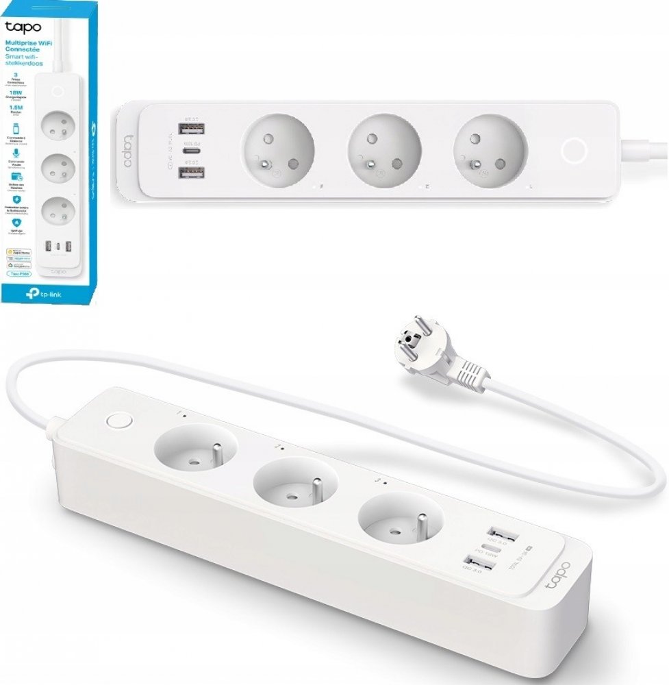 Vícenásobná chytrá zásuvka TP-Link Tapo P300 prodlouží fyzický dosah až o 1,5 m a skvěle se hodí do omezených prostorů díky 57mm rozestupu mezi sousedními zásuvkami, které se tak nebudou vzájemně blokovat. Polykarbonátový blok zahrnuje hned 3 individuálně nastavitelné zásuvky s napětím 100 až 240 V a s maximálním proudem 10 A, 2 nabíjecí porty USB-A a 1 reverzibilní konektor USB-C s podporou Power...