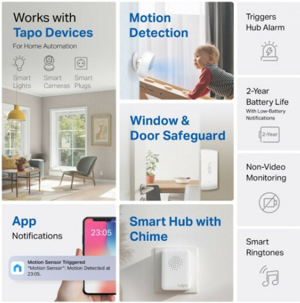 Zvyšte zabezpečení svého domova pomocí sady chytrých senzorů TP-Link Tapo T30 Kit. Obsahuje detektor pohybu, senzor kontaktu na okna a dveře a hub. Hub je kompatibilní se všemi zařízeními Tapo – teplotními čidly, senzory, chytrými tlačítky i kamerami. Díky němu je propojíte a vytvoříte chytrou domácnost.