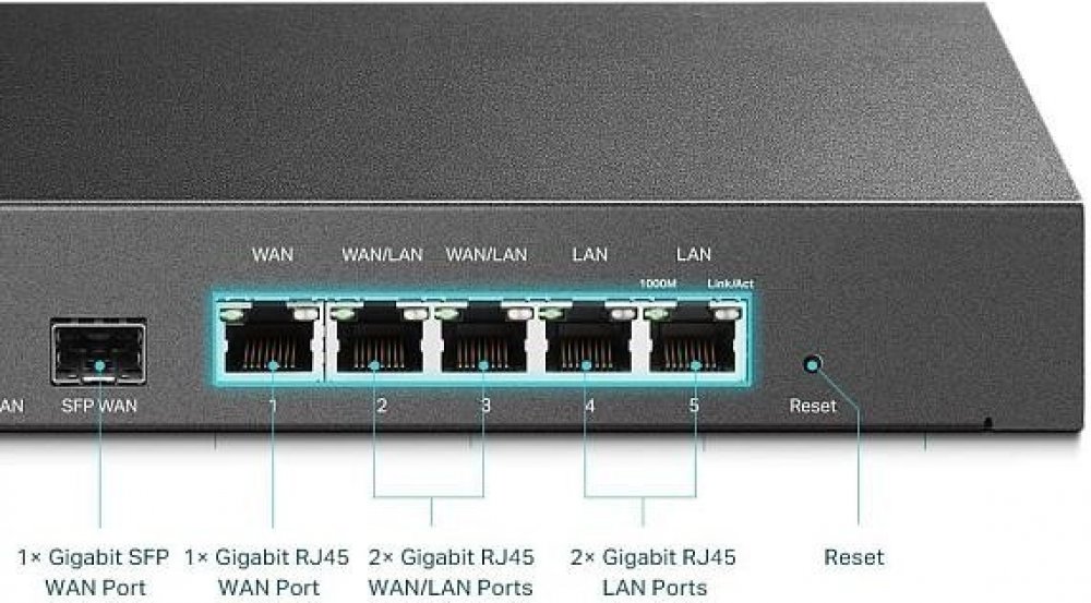 Router je vybaven celkově 5 Gigabitovými metalickými porty z čehož je 1x WAN, 2x LAN a 2x LAN/WAN. Tuto pětici doplňuje Gigabitový SFP port pro přívod pomocí optického vlákna. Tento port lze nastavit pouze jako WAN. Router pro přístup do lokální sítě umožňuje nastavení i několika možností VPN serverů a to konkrétně: IPsec, PPTP, L2TP a OpenVPN.