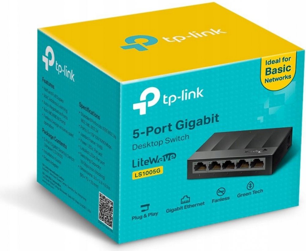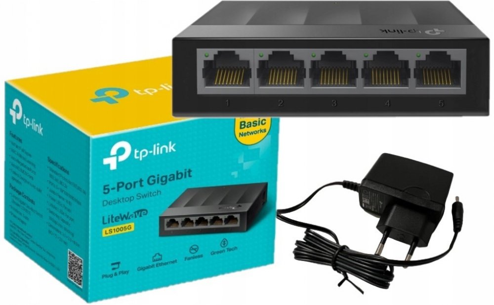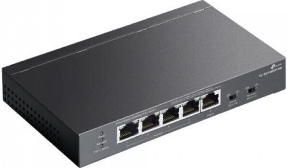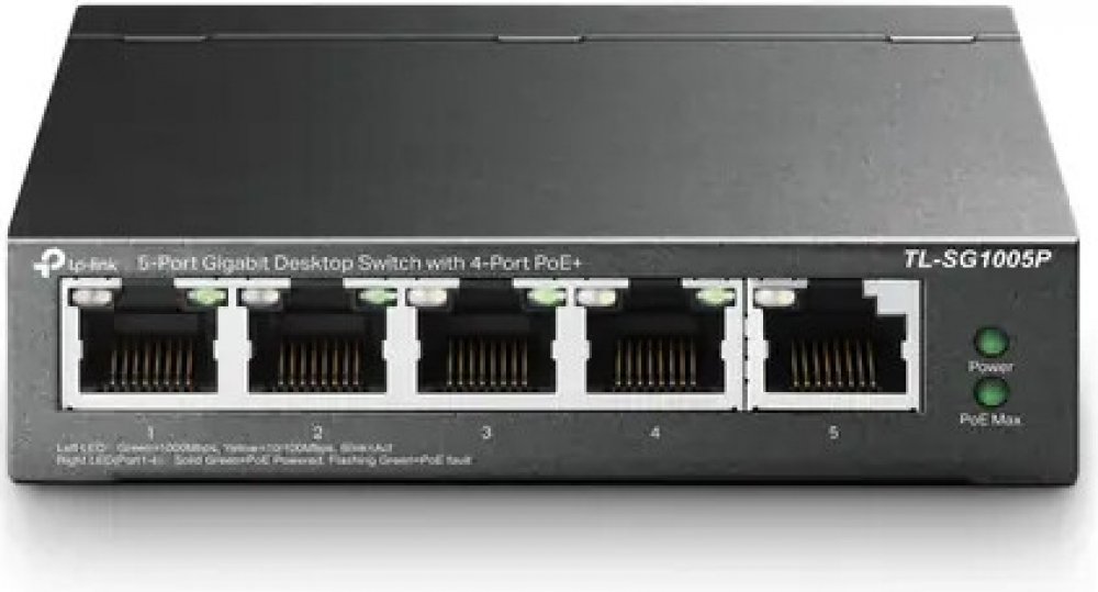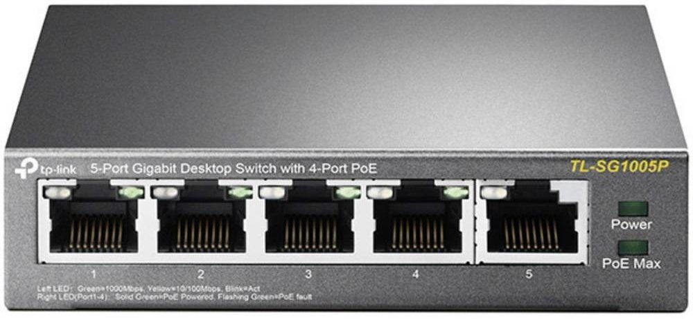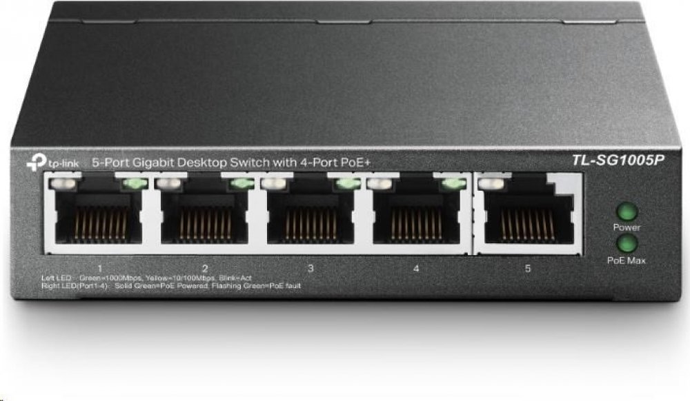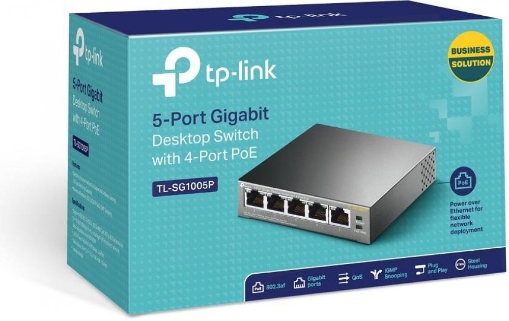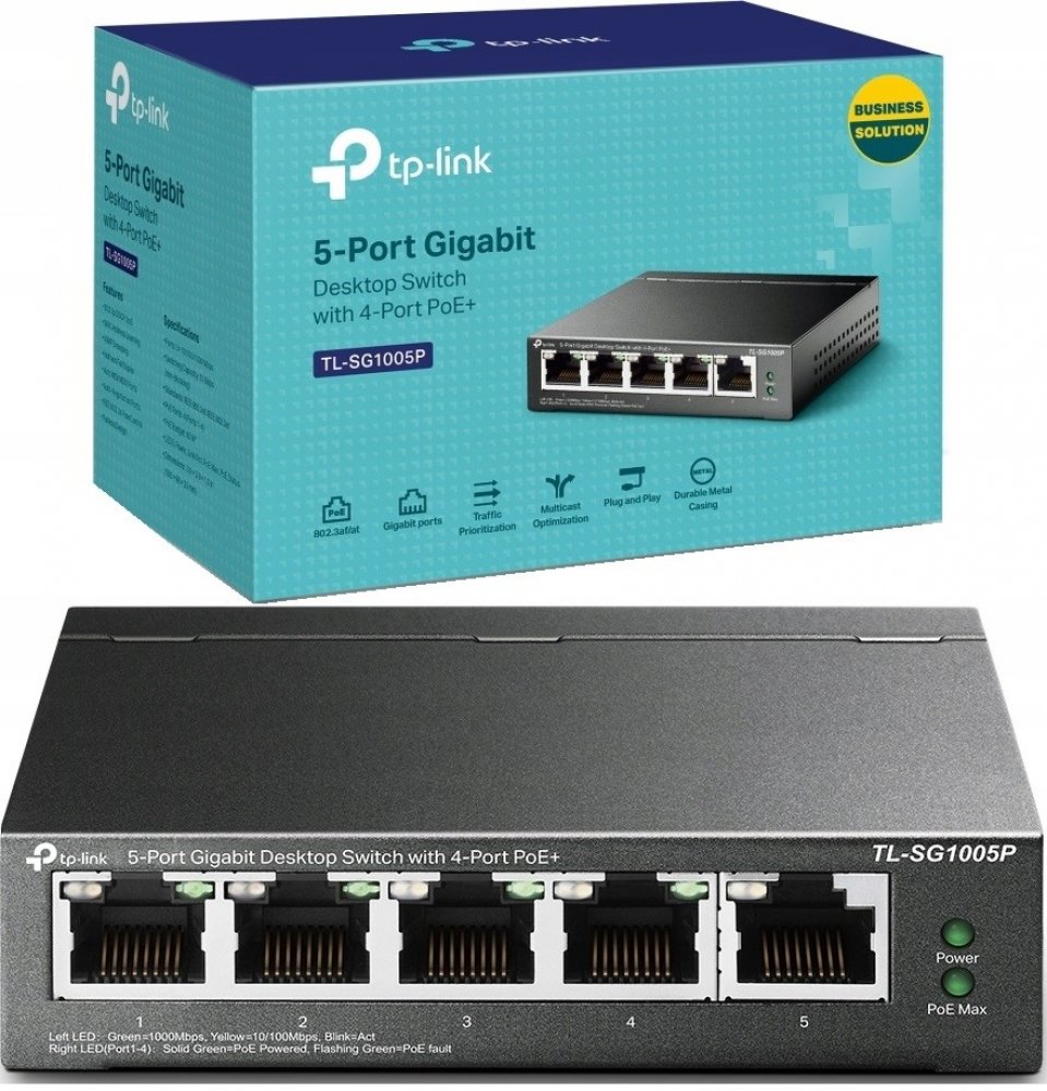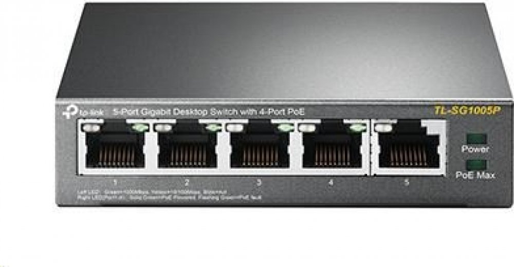Neřízený switch TL-SG1005P je vybaven pěti porty s rychlostmi přenosu 10/100/1000 Mb/s, který nevyžaduje žádnou konfiguraci a nabízí 4 porty s napájením PoE (Power over Ethernet). Dokáže automaticky detekovat a napájet jakákoli zařízení PD (Powered Devices), která splňují protokol IEEE 802.3af. V tomto provedení je elektrické napájení přenášeno společně s daty přes stejný kabel, což vám umožňuje rozšířit vaši síť i do míst, kde nejsou elektrické přípojky nebo zásuvky, ale kde chcete použít zařízení, jako jsou přístupové body, IP kamery nebo IP telefony, atd.