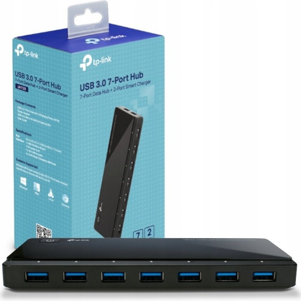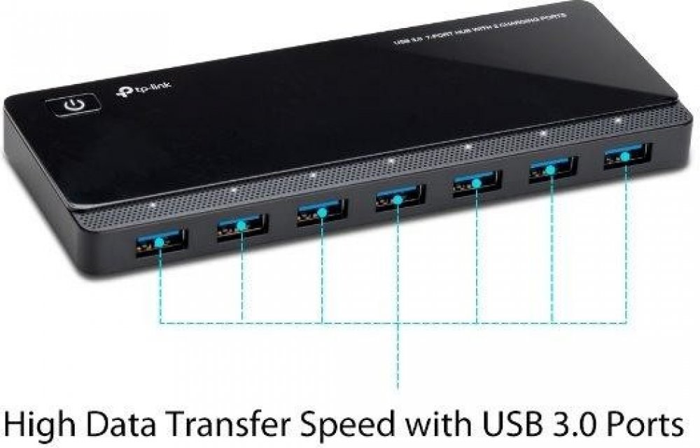 USB rozbočovač UH720 je skvělou volbou pro rozšíření USB portů počítače pro přenos dat, když potřebujete současně připojit USB disk, USB myš, tiskárnu nebo jiná zařízení. Port USB 3.0 umožňuje přenosovou rychlost až 5 Gbit/s, 10 rychlejší než USB 2.0 Díky dvěma 5V 2,4A nabíjecím portům je rozbočovač schopen uspokojit požadavky všech vašich mobilních zařízení.