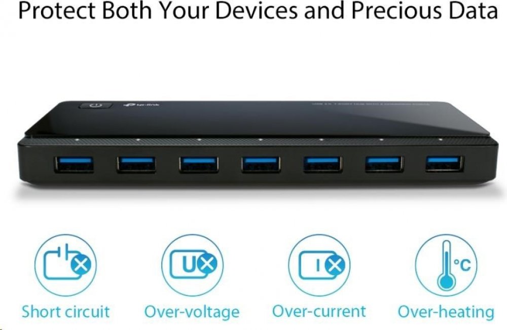 Několikanásobná ochrana USB rozbočovače UH720 zamezuje možnému poškození vašich připojených zařízení bez ohledu na to, zda přenášíte data nebo nabíjíte zařízení.