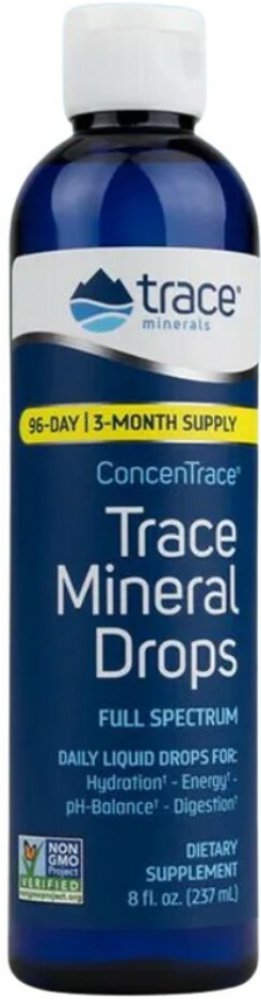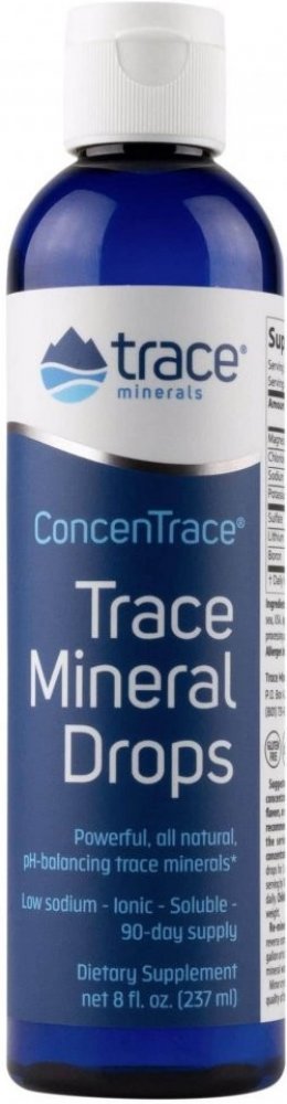ConcentTrace® Trace Mineral Drops je jedním z nejsilnějších a nejkvalitnějších přírodních minerálních doplňků na světě. Je to komplex vysoce koncentrovaných minerálů a účinných látek, obsahující více než 72 přírodních minerálů, extrahovaných z velkého solného jezera v Utahu. Tento doplněk je 100% přírodní bez dalších přísad a iontová forma zajišťuje až 99% absorpci do organismu.