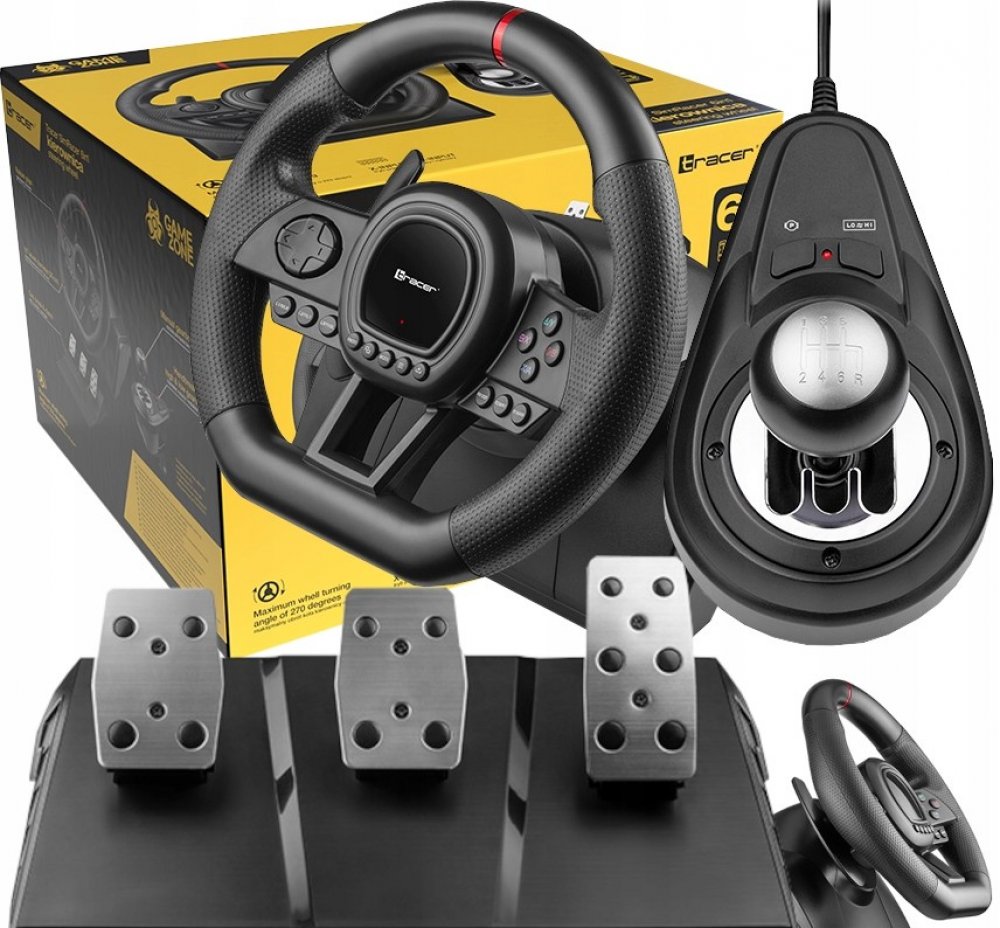 Součástí výbavy je manuální řazení a pedálový modul se třemi pedály – plyn, brzda a spojka – které společně přinášejí autentický pocit jako za volantem skutečného auta. Díky protiskluzovému gumovému povrchu perfektně sedí v rukou i při rychlém a dynamickém hraní. Pro pevné uchycení na stole nebo jiné ploše využívá volant přísavky, které zajišťují stabilitu i při intenzivním používání. Na volantu najdeš prakticky rozmístěná ovládací tlačítka a 8směrný D-pad, díky kterým máš vše potřebné hned po ruce.