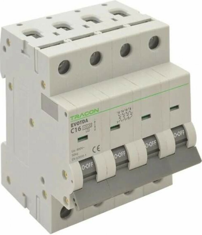 Čtyřpólový jistič Tracon TDA-4B-25 na DIN lištu je třípólový jistič s charakteristikou zátěže B a maximálním proudem 25 A, zkratová schopnost 10 kA. Jistič slouží k ochraně elektrických obvodů proti přetížení a zkratu.