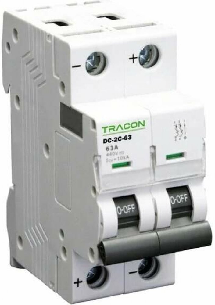 Tracon DC-2C-13 Jistič pro jednosměrné obvody, 2P, s charakteristikou C, max. proudem 13 A, napětí 220VDC.