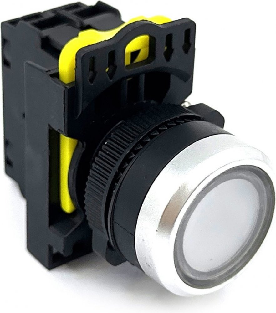Podsvícený tlačítkový spínač - bílýPodsvícený tlačítkový spínač odolný proti vibracím s kontakty 1xNO (spínací), jmenovitým napětím 230V a jmenovitým proudem 5A.Parametry:Ovládací síla F ON: Max. 20 NOvládací síla F OFF: Max. 15 NPrůměr otvoru: 22 mmJmenovitý pracovní proud: 5APrůřez zapojitelných vodičů: 0,5 - 2,5 mm2Stupeň krytí: IP65Teplota okolí: od -25 do +40 °CJmenovité izolační napětí: 660VJmenovitý pracovní proud (AC15, 230V): 3AMechanická životnost: x10ˆ6