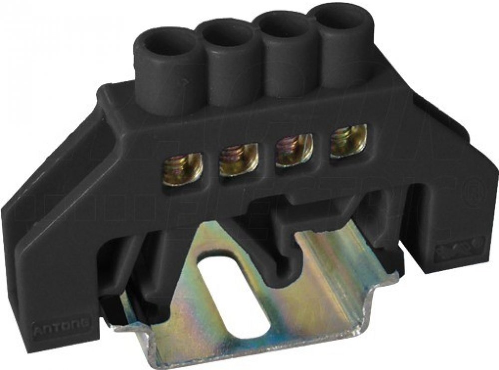 3D fotografie Tracon NPE-BK6-4 Můstek na neutrální a ochranné vodiče (N/PE), černý 230/400VAC, 63A, 6×9mm, 4P, IP20.