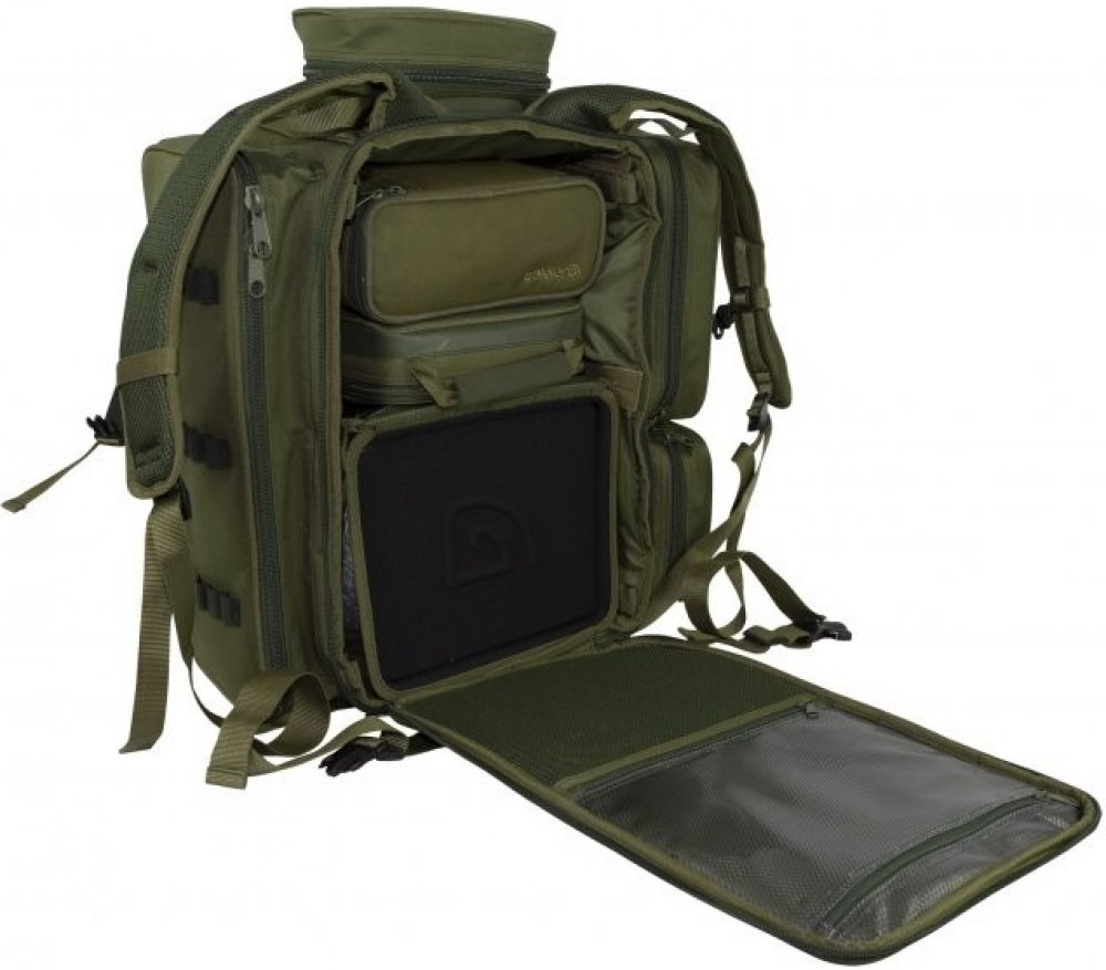 Ruksak umožňuje více konfigurací, aby si uživatel mohl přizpůsobit úložný prostor podle svých preferencí. Je perfektně přizpůsoben pro mobilní rybaření nebo delší výpravy a nízkoprofilový design umožňuje snadné uložení pod lehátko. Když je ruksak rozložený, má snadný přístup ke všem klíčovým oblastem, což je ideální při rybaření s rybářským vozíkem. Bylo upraveno otevírání a přesunuty popruhy na ramena, aby z víka ruksaku vznikl plně funkční, samostatný stůl.