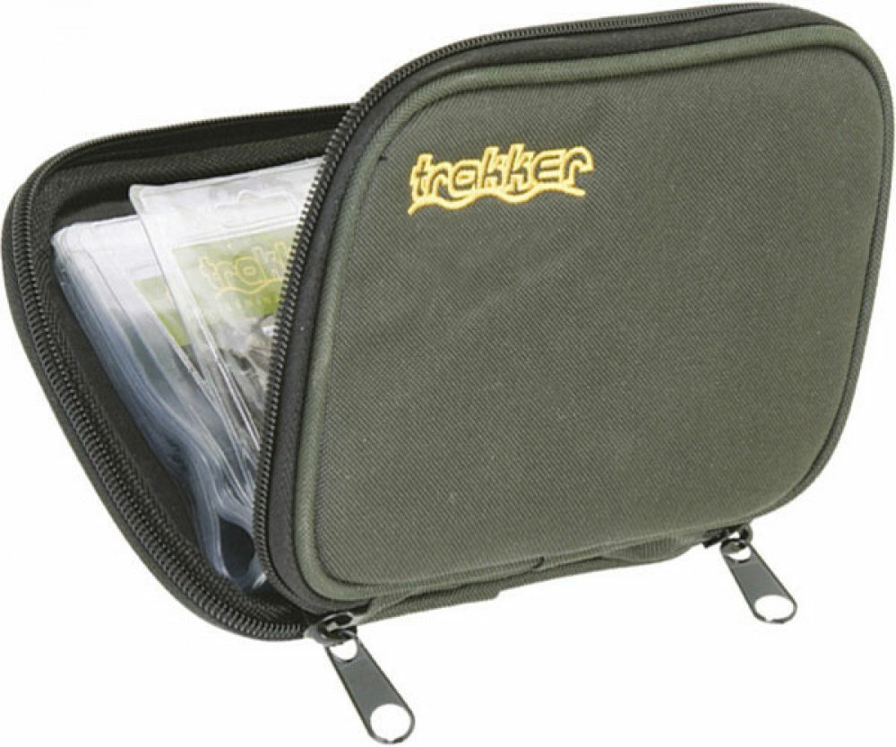 Rybářské pouzdro Trakker Rig Pouch je určeno pro přehledné a bezpečné uložení navázaných háčků a návazců. Uvnitř se nachází 20 ks čirých PVC sáčků o velikosti listu 18 × 10,5 cm, které jsou uprostřed rozdělené, takže vzniknou dvě kapsy o rozměru přibližně 9 × 9 cm. Sáčky nejsou uzavíratelné - horní část je otevřená pro rychlé vložení a vyjmutí návazce.