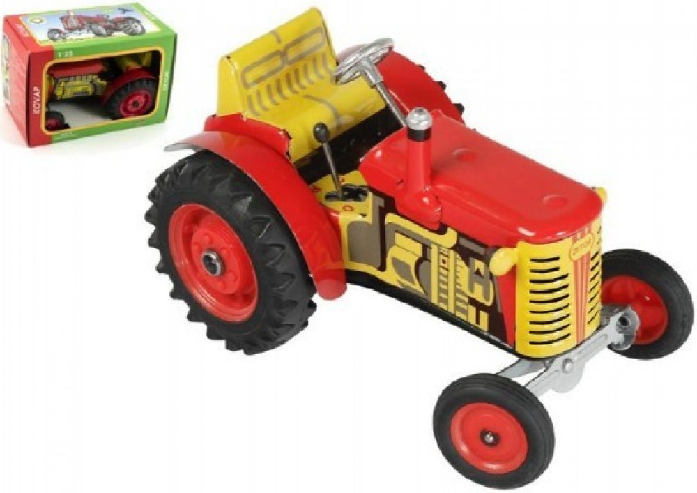 Traktor Zetor 25A od značky Kovap. Pohyb traktoru zajišťuje unikátní pérový strojek natahovaný klíčkem. Traktor lze řídit volantem, je vybaven převodovkou se třemi rychlostmi vpřed a zpátečkou a zabrzdit ho můžete ruční brzdou. V poměru 1:25.