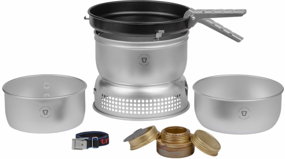 Souprava na vaření Trangia 27-3 UL je tradiční švédská soustava na vaření pro 1-2 osoby. Ideální společník na každé dobrodružství. Každá sestava obsahuje podstavec, lihový hořák, závětří, dva litrové hrnce , pánev, rukojeť a popruh na převoz vařiče.