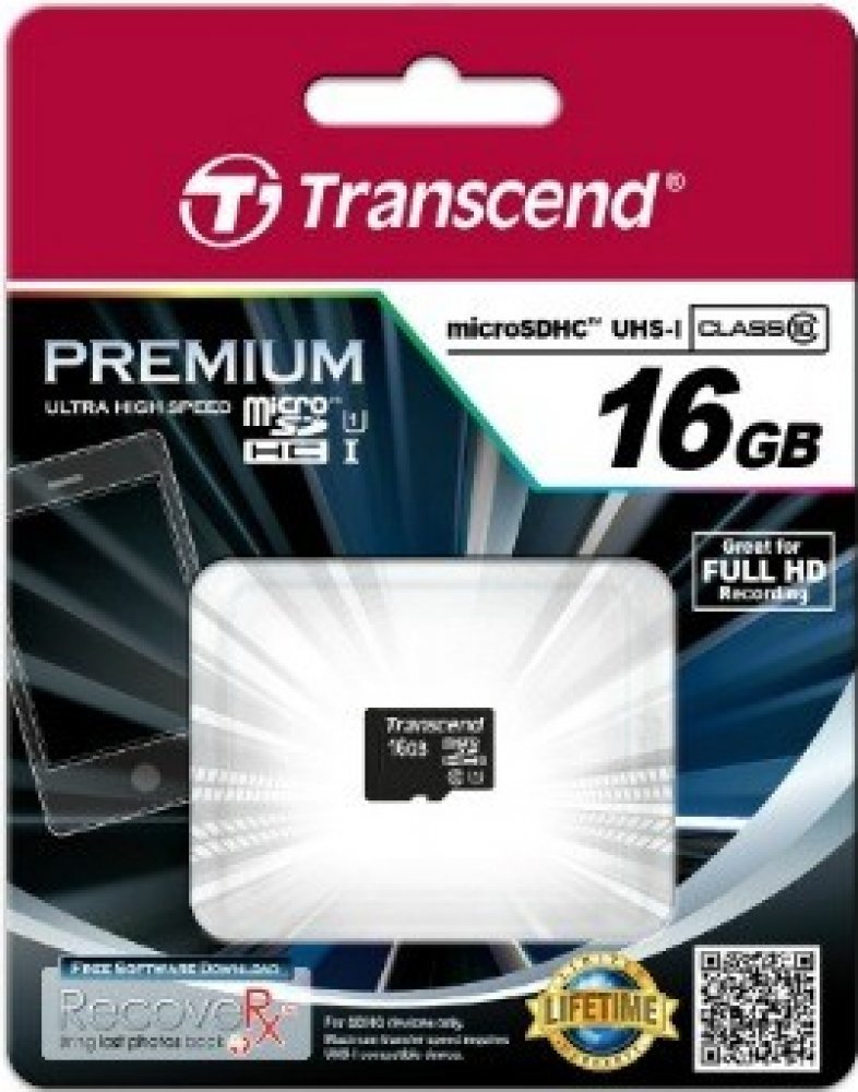16 GB Transcend microSD 45 MB/s 25 MB/s Class 10 UHS-I U1