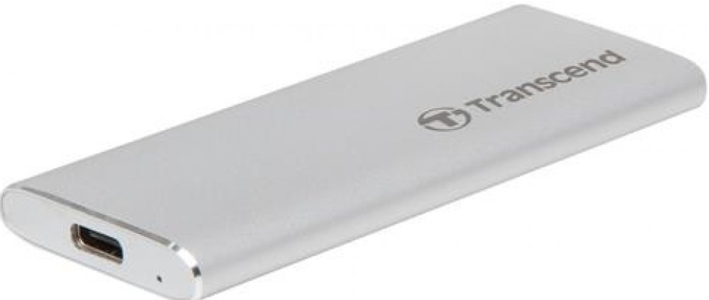 Transcend 240 GB 2.5" USB 3.2 Gen 2 (USB 3.1) SSD rychlé kapesní / mini pro přenos a práci s daty 240 GB 3D TLC bez RAID stříbrné hliník USB-C 520 MB/s 460 MB/s 33.6 mm 7.5 mm 81.4 mm 33 g