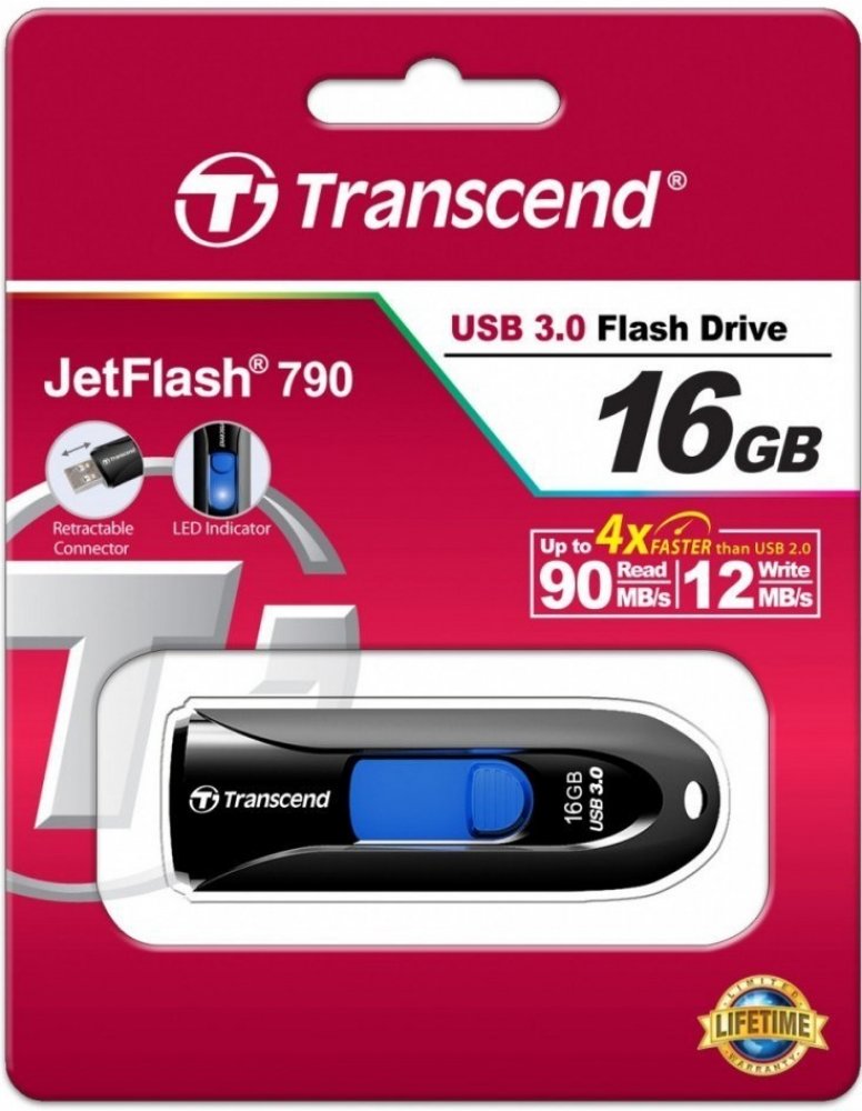 The capless JetFlash 790 USB 3.1 Gen 1 Flash drive utilizes a retractable USB connector to shield your data while in transit - simply push at the colored slider to slide the connector out. The JetFlash 790 sports the USB 3.1 Gen 1 interface with up to 16 GB capacity. This combination of blazing fast data transfer rates and substantial storage space make it easier than ever to store, carry and share all your digital files wherever you go.
