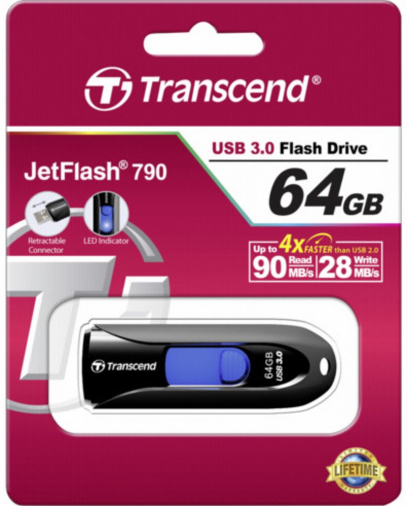 Transcend 64GB JetFlash 790K, USB 3.0 (3.1 Gen 1) flash disk, černo/modrý