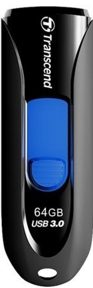 Transcend 64 GB USB 3.2 Gen 1 (USB 3.0) 90 MB/s 30 MB/s USB-A s jedním konektorem rychlé 5 g plastové černé 11 mm 64 mm 21 mm zasouvací se standardní odolností