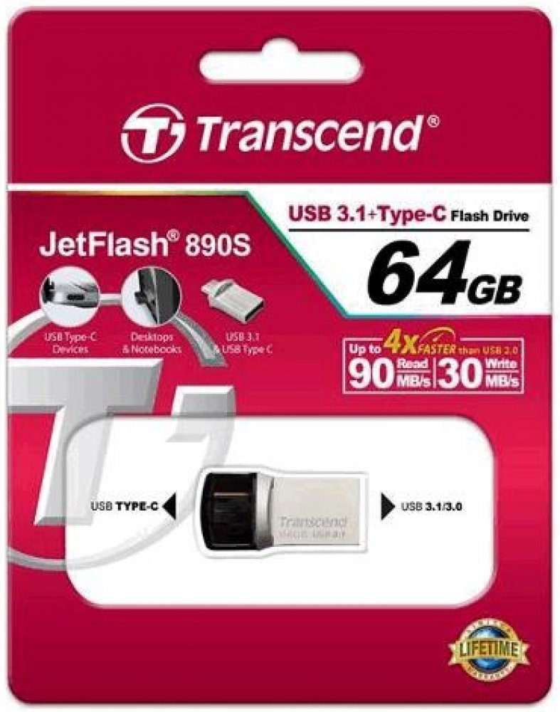 Seznamte se s novou generací technologie USB, Typ-C. JetFlash 890 je ultralehký přenosný flashdisk vybaven dvěma konektory - klasickým USB 3.1 (Gen 1) a pokročilým USB konektorem Typ-C. Portem USB Typ-C jsou vybaveny nejnovější ultrabooky a přenosná zařízení, stejně jako Apple produkty. Tento vylepšený USB konektor je oboustranný, což znamená že jej můžete zasunout bez rozmýšlení a bude to vždy správně.