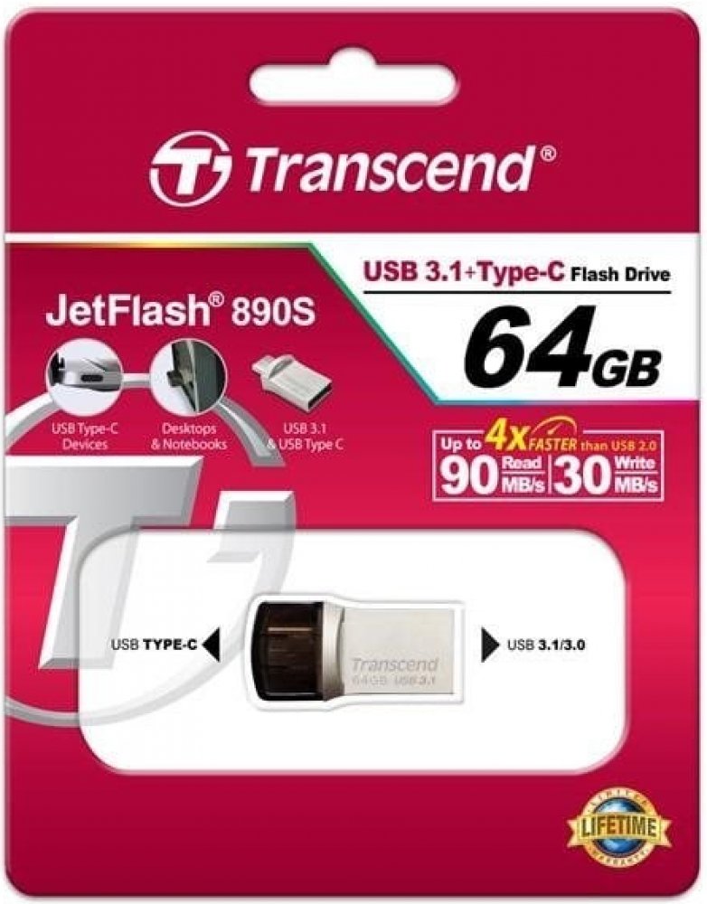 TRANSCEND JetFlash 890S OTG Type-C/A 64GB TS64GJF890S