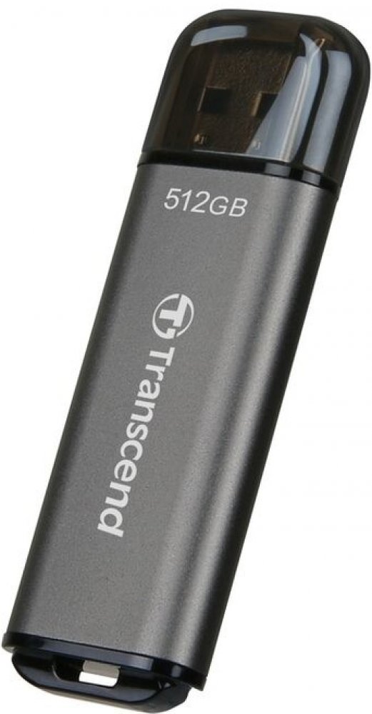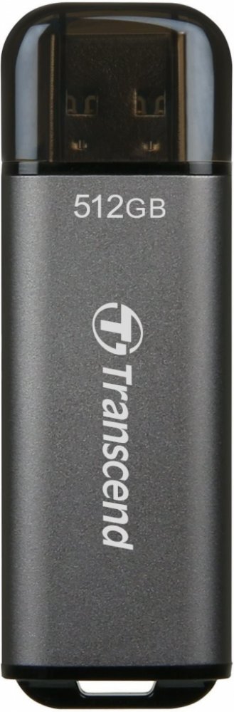 Transcend 512 GB USB 3.2 Gen 1 (USB 3.0) 420 MB/s 400 MB/s USB-A s jedním konektorem vysokorychlostní 10 g hliníkové šedé 8 mm 62 mm 20 mm s odnímatelným víčkem FAT32 odolné proti vodě a prachu