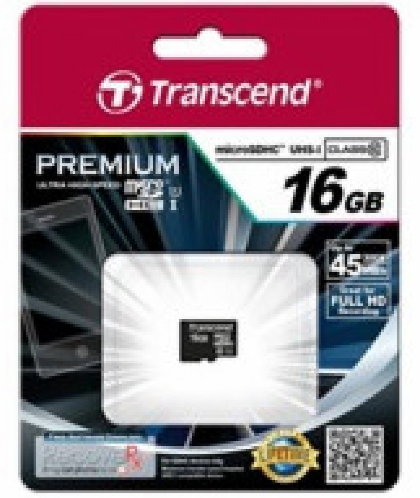 16 GB Transcend microSD 95 MB/s 10 MB/s Class 10 UHS-I U1 V10