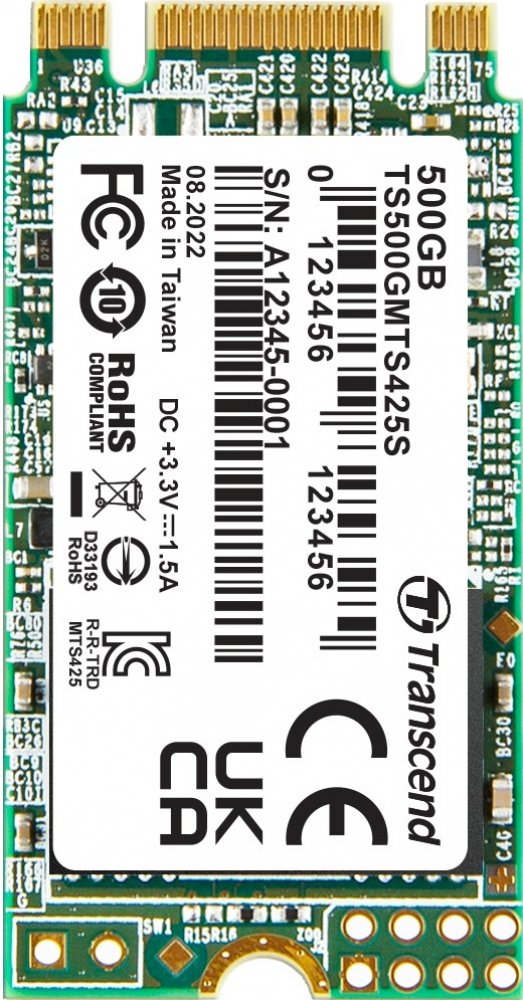 Transcend 500 GB M.2 SATA 6Gb/s 3D TLC pro OS a aplikace pro vyvážený výkon pro lehké zápisy MTS425S 5.0 g M.2 2242 530 MB/s 480 MB/s 50000 IOPS 75000 IOPS 180.0 TBW 2000000 hodiny
