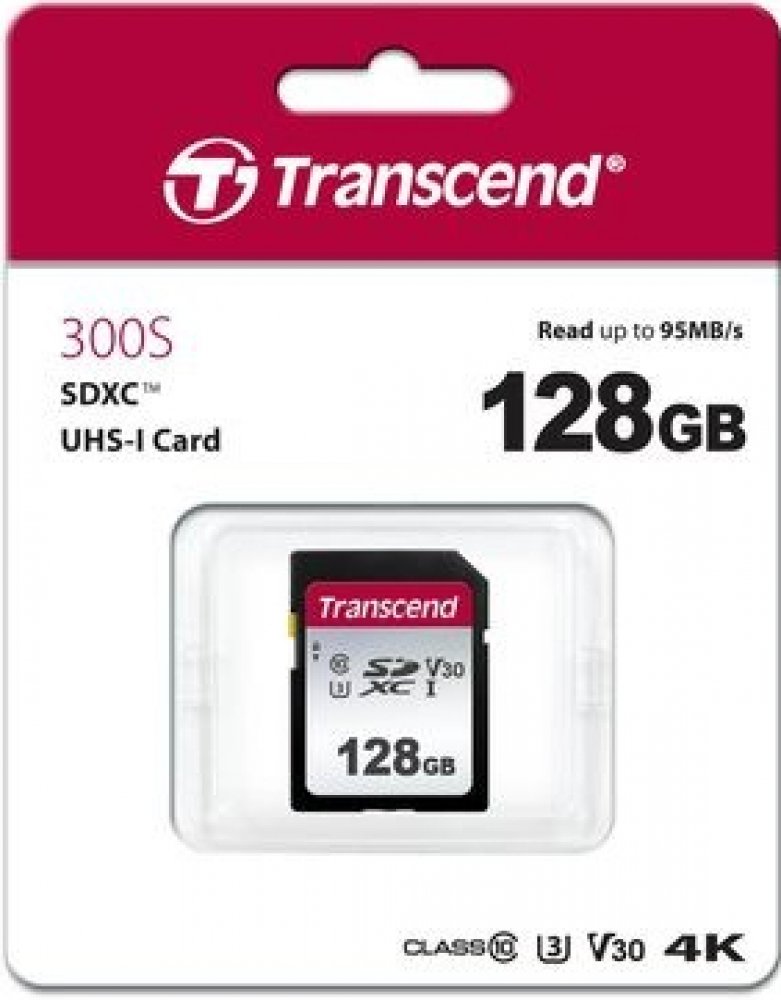 SDXC/SDHC 300S Transcend's SDXC/SDHC 300S memory cards provide the performance and capacity necessary to harness the full power of your UHS-I compliant digital camera or camcorder. In addition to incredible transfer speeds, the cards meet UHS Video Speed Class 30 (V30) standards, allowing for smooth, uninterrupted 4K video capturing. V30 compliance applies to only 64GB-512GB capacity cards. Record...