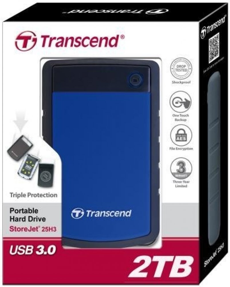 Moderní, kompaktní a velmi rychlý externí pevný disk značky Transcend v odolném silikonovém pouzdru splňující náročné armádní standardy pro případ pádu. Disk poskytuje kapacitu 2000 GB pro ukládání opravdu velkého množství dat. Disk podporuje úsporný režim při delší nečinnosti a mnohem vyšší přenosové rychlosti, díky ultra rychlému přenosu dat přes nové rozhraní USB 3.0, které je samozřejmě kompatibilní s běžně rozšířeným, avšak pomalejším USB 2.0. Lehce se tedy stane prvkem častých zápisů dat, jakými mohou být zálohy nebo jako aktivní kapacitní rozšíření notebooků či stolních počítačů. Díky malým rozměrům a nízké hmotnosti ho můžete mít neustále při sobě. Na těle disku je přítomno tlačítko pro snadné zálohování a nechybí tedy software Transcend Elite pro zálohování či zabezpečení disku.