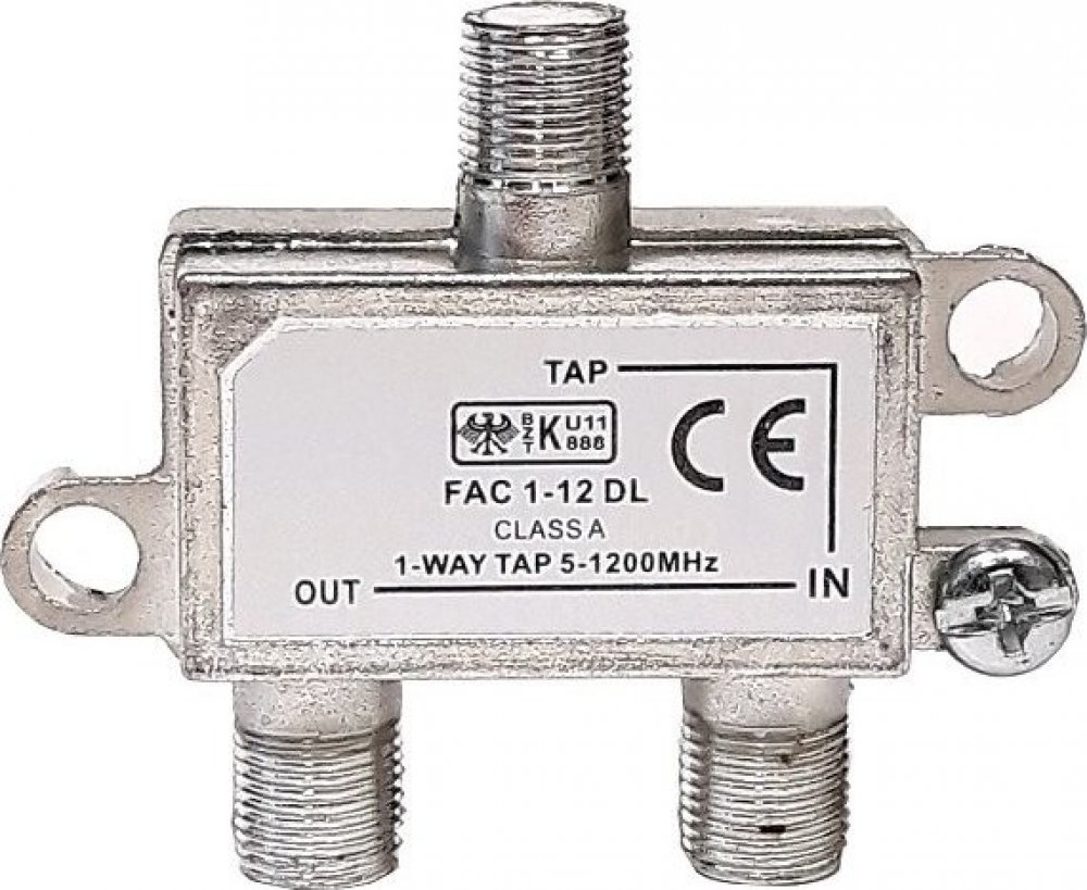Odbočovač TV signálu, 1 směr, 5 - 1000MHz, odbočovací útlum 12 dB. Využití pro instalace do STA a kabelových rozvodů.