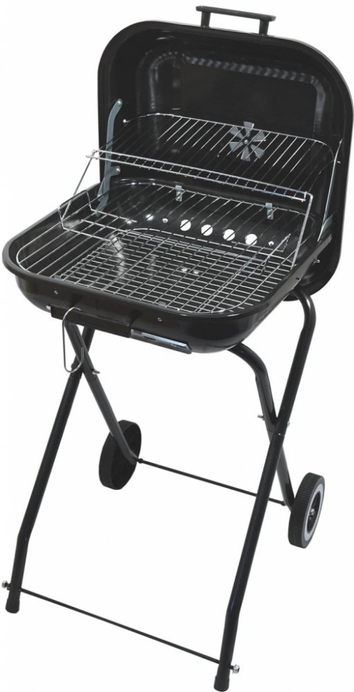 Pohledný gril,který se pyšní svým zvláštním tvarem a hodí se do každé zahrady,či terasy. Je vyroben z oceli a je také stabilní díky svým čtyřem kovovým nohám,kolečka z plastu zajišťují jeho mobilitu. Ocelový plech je vybaven smaltovou úpravou. Má velmi kvalitní a šikovné odklápěcí víko.