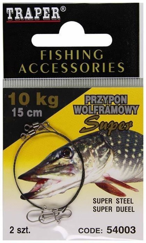 Kvalitní wolframová lanka pro lov dravých ryb. Na jedné straně je lanko osazeno obratlíkem a na druhé karabinou. Sáček obsahuje 2 ks.
