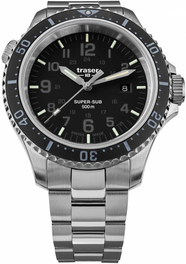 Traser analogové ocel sportovní pánské bateriové - quartz pro potápění (100+ m) 46.0 mm ocel 500 m bateriové 215.0 g safírové P67 T25 SuperSub kulaté stříbrná černá s trigalight motýlková spona 2.2 cm na ruku švýcarské s arabskými číslicemi stříbrná ocel 4.6 cm velké jednosměrně otočná keramika 15.0 mm 22.0 mm 15.0 mm 46.0 mm s trvalým svícením (tritium/Super-LumiNova) s nenáročnou údržbou (quartz) bez chytrých funkcí