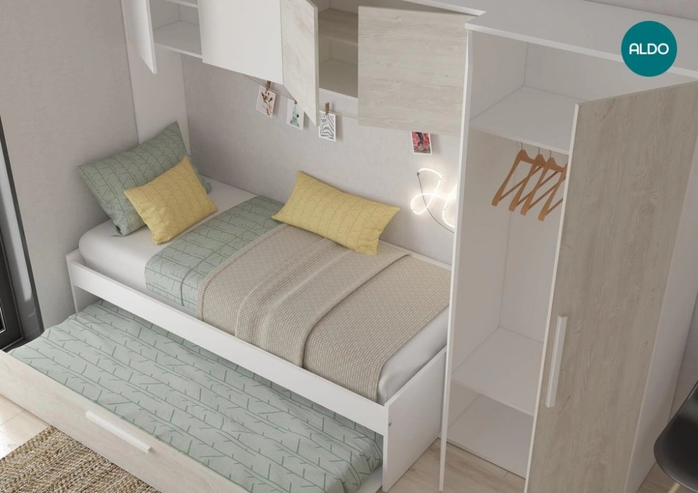 Opravdu jen velmi málo místa k dispozici pro vybavení dětského pokoje?. Představujeme vám unikátní a velmi působivé řešení, jak zařídit rozměrově malý dětský pokoj a to z nabídky španělského výrobce. Design, který je ideální pro panelákový typ pokoje, který je úzký a dlouhý. Navíc v identickém designu můžete pořídit širokou škálu dalšího dětského nábytku a tak máte pro vybavení pokoje vašich dvou ...