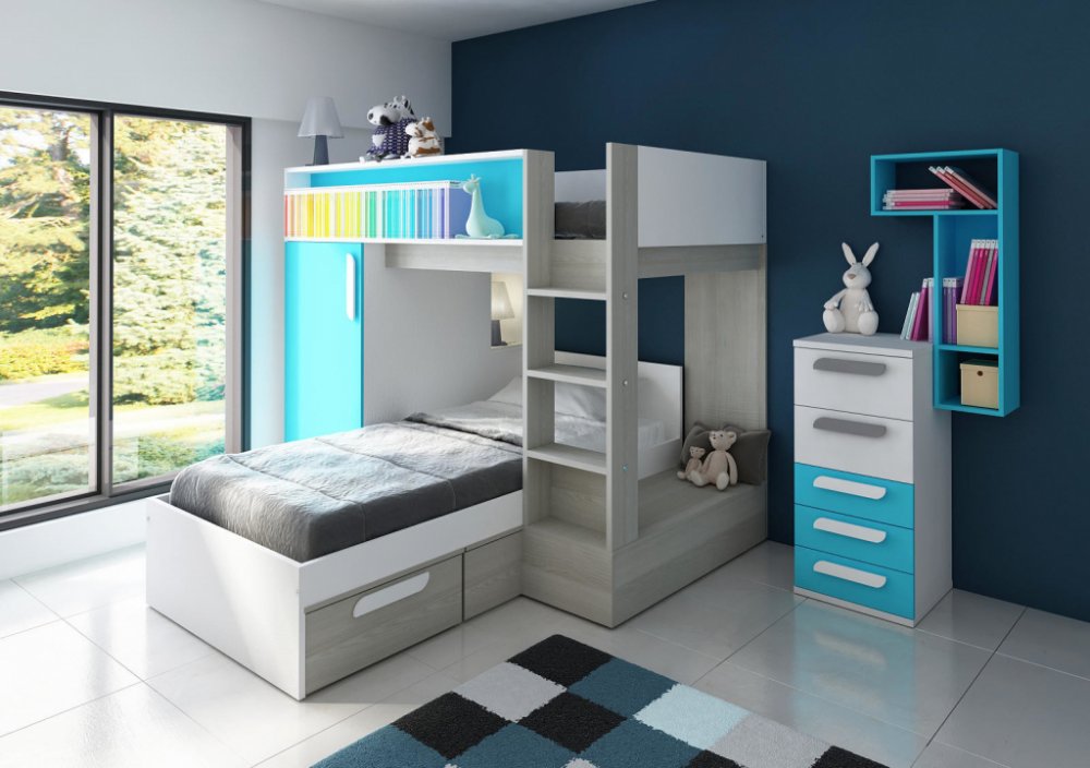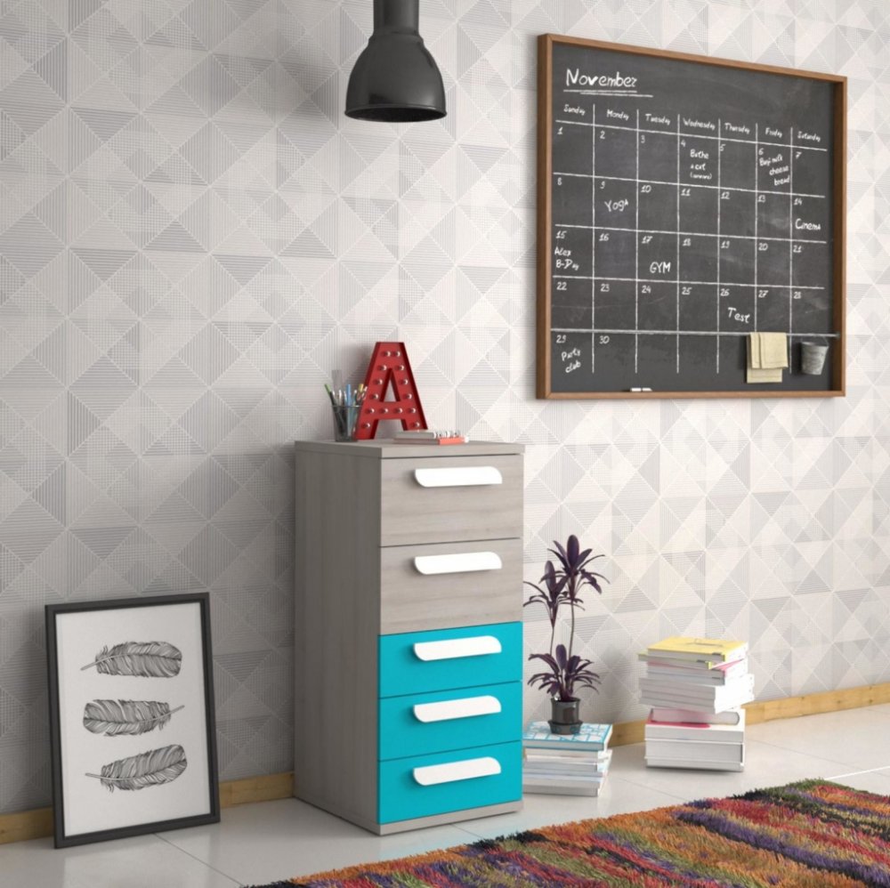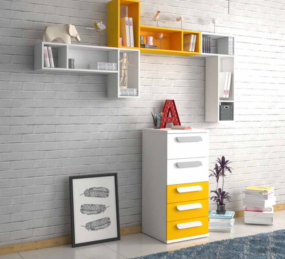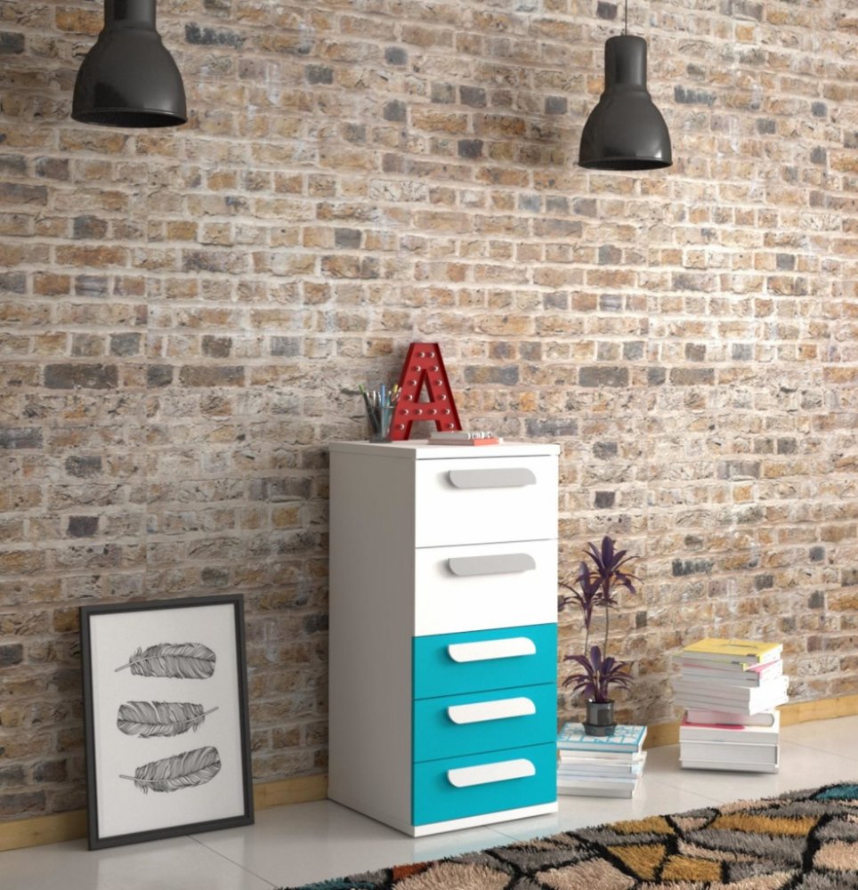 Moderní dětská komoda se zelenými prvky a v kombinaci dalších odstínůV nabídce dětského nábytku kolekce B od španělského výrobce si vždy můžete vybrat z několika kombinací odstínů. Představujeme komodu s šuplíky, která nabízí korpus v přírodní imitaci dřeva dub a tři šuplíky v zeleném odstínu. Úchytky jsou vždy bílé. Místo odstínu dub šedý, který je na korpusu komody však můžete mít bílý odstín. Nebo místo zelených šuplíků, můžete mít šuplíky žluté, černé, červené, modré i růžové. Španělský výrobce je znám nejen kvalitou a velmi nadčasovým designem, ale rovněž nejširší škálou odstínu vždy pro daný typ nábytku. Možností pro vybavení dětského pokoje, nebo studentského pokoje je tak nekonečné množství. Ve stejném provedení dub s prvky v zeleném odstínu pak můžete pořídit celou řadu samostatných dílů nábytku, velmi oblíbené jsou patrové postele, nebo dětské postele v nejrůznějším provedení, od postele s přistýlkou až po postel multifunkční. zelený odstín pak může být v interiéru každého dětského pokoje příjemným spojovacím článkem. Zelený odstín je neutrální a je tak vhodný jak pro holky, tak pro kluky. Materiálem je laminátová deska, dodání v dílech s nutností montáže dle návodu.Španělský výrobce patří k těm, kteří se soustředí především na moderní design, který je navržen dle zásad ergonomie bydlení. Jeho rukopis je snadno rozpoznatelný, design je velmi pestrý, stejně jako široká škála odstínů na výběr. Tradice výrobce dlouhodobá a je rozhodně díky letitým zkušenostem zárukou té nejvyšší kvality. Dětský nábytek španělského výrobce je velmi praktický a ohleduplný k rozměrům místnosti, je tak vhodný rovněž do malých interiérů.