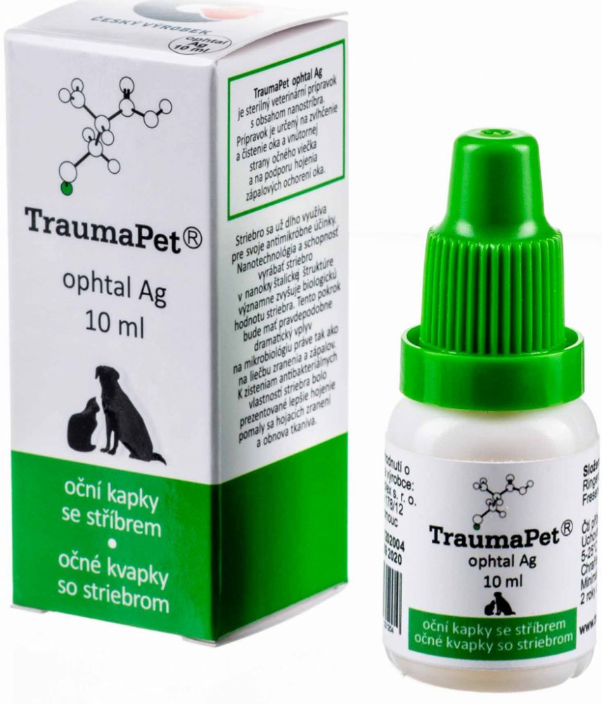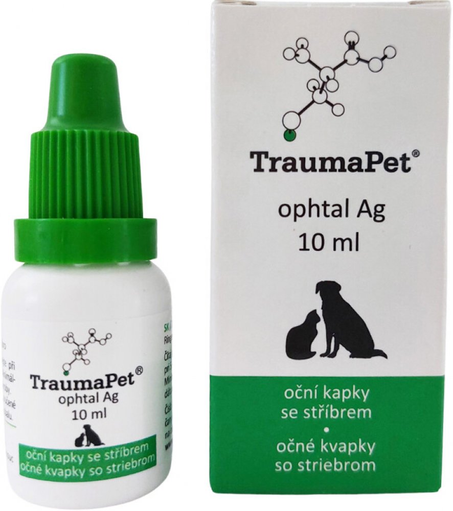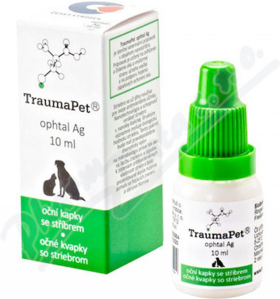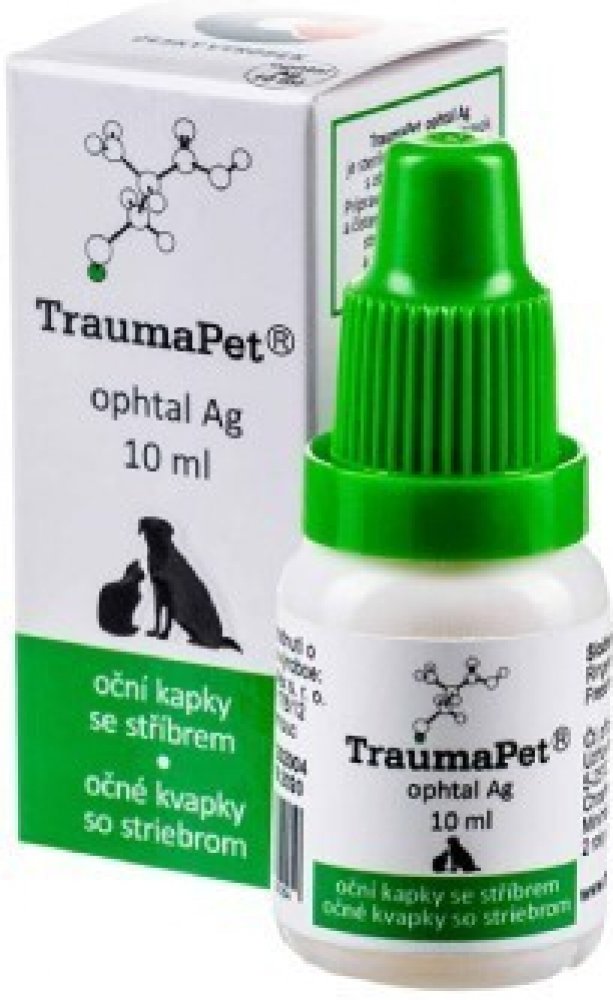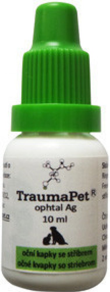 TraumaPet Ophtal Ag jsou sterilní oční kapky s obsahem nanostříbra, určené pro zvlhčení a čištění oka a vnitřní strany očního víčka. Jsou vhodné rovněž jako podpůrný prostředek při hojení zánětlivých onemocnění oka a očního víčka. Vhodné pro všechny druhy chovaných zvířat.