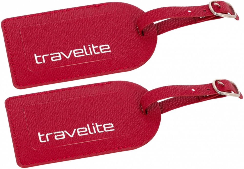 Sada dvou jmenovek na zavazadla od německého výrobce Travelite z umělé kůže – 2 kusy v balení od stejné barvy.