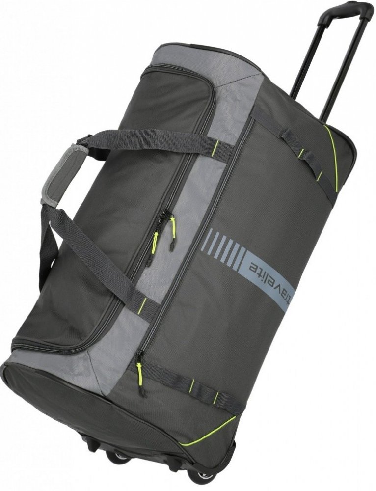 Cestovní taška na kolečkách 71 cm z kolekce německé značky Travelite ze série basics active v tmavší antracitové barvě. Robustní materiál s jasnými barevnými akcenty.