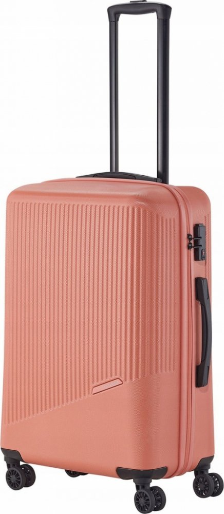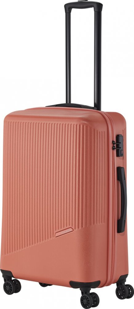 Jednoduše navržený interiér s látkovou příčkou a popruhy pomůže rychle a přehledně sbalit vše potřebné na delší cesty i kratší pobyt mimo domov. Skořepina z odolného tvrdého plastu s hrubým povrchem a integrovaný zámek ochrání uložené věci během přepravy. Čtyři kolečka usnadní jízdu v terénu i manipulaci s plně naloženým zavazadlem.