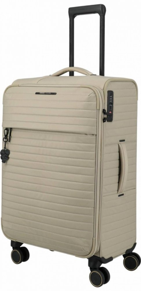 Elegantní dámský kufr Travelite BARBARA Stepp M je ideální zavazadlo do letadla, autobusu, vlaku i auta, které se přizpůsobí vašim potřebám. Střední textilní kufr na čtyřech kolečkách z exkluzivní řady módních dámských zavazadel vytvořených ve spolupráci s oblíbenou německou moderátorkou a herečkou Barbarou Schöneberger nabízí moderní vzhled i řadu vychytávek usnadňujících balení. Chytře navržený interiér s přihrádkou na košile, kompresními popruhy, dvěma vnitřními kapsami na zip, cestovním pouzdrem na šperky a vakem na boty se postará o přehlednou organizaci všech věcí potřebných na cesty a při přepravě je udrží na svém místě. Uzamknutím integrovaného TSA zámku kufr zajistíte proti nežádoucímu otevření. To nejdůležitější, co je třeba mít po ruce, uschová dobře dostupná přední kapsa na zip. Velkou předností je také integrovaný expandér, díky kterému získáte úložný prostor navíc.