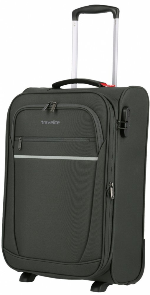 Textilní kufr německé značky Travelite 55 cm v antracitové barvě z linie cabin s možností zvětšení objemu. Zavazadla Cabin jsou vyrobena z odolného polyesteru a byla speciálně vyvinuta pro použití jako příruční zavazadla.
