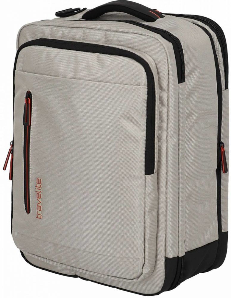 Dvoukomorová palubní taška a palubní batoh v jednom z řady Travelite Crosslite 5.0 - Díky chytře navrženému designu se do hlavní komory přehledně vejde nejen oblečení, ale i náhradní obuv, cestovní ručník či kosmetická taštička. Zadní komora hravě pojme 15,6" notebook. Do přední kapsy můžete uložit příslušenství, tablet, letenku, peněženku s doklady, cestovní pas, mobil a klíče. Pokud byste potřebovali více úložného prostoru, stačí rozepnout zip expandéru. Komfortní polstrování zad umožní pohodlné nošení na zádech jako batoh. Ramenní popruhy lze ale kdykoli odepnout a udělat z batohu tašku přes rameno nebo do ruky, kterou můžete také nasadit a vézt na výsuvném madle cestovního kufru.
