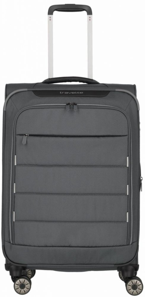 Travelite 62 l 2.4 kg podpalubní textilní M na delší pobyt (1–2 týdny) šedá jednobarevné 4 otočné standardní TSA zámek 2 67 cm 43 cm 27 cm 2 let střední výbava