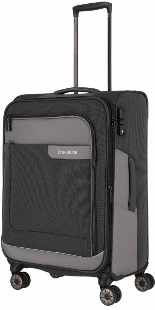 Travelite 80 l 2.9 kg podpalubní textilní L na delší pobyt (1–2 týdny) šedá jednobarevné 4 dvojité otočné o 360° standardní TSA zámek 67.0 cm 44.0 cm 29.0 cm 1 střední výbava