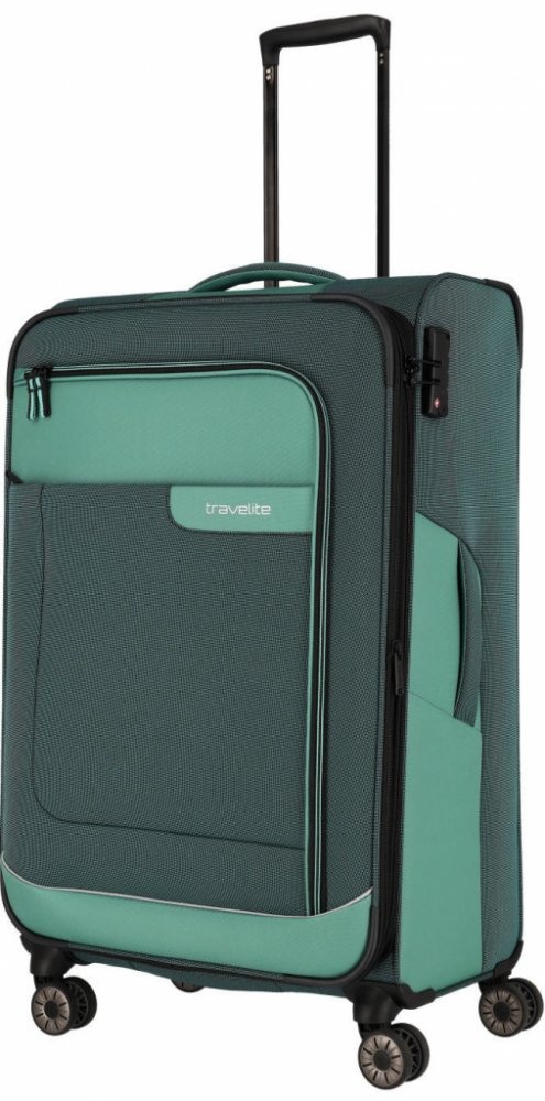 Travelite 91 l 77 x 47 x 30 cm 3.4 kg podpalubní textilní L na dlouhý pobyt (2+ týdny) zelená jednobarevné 4 dvojité otočné o 360° standardní TSA zámek 2 77 cm 47 cm 30 cm 3 let střední výbava