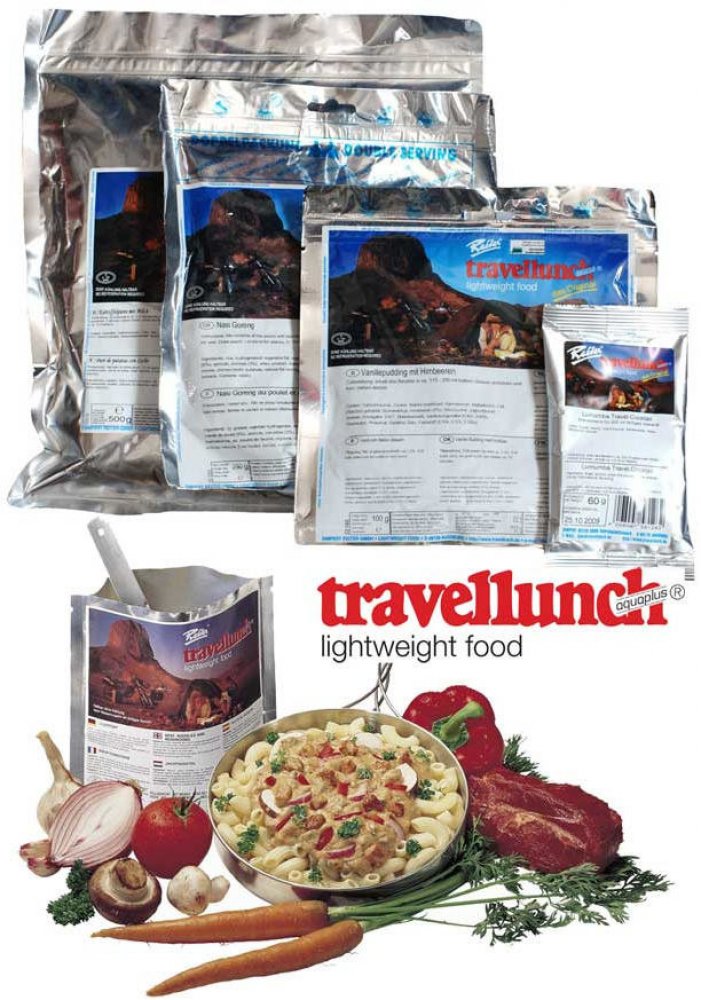Hmotnost jedné porce Travellunch v dehydrovaném stavu: 125g