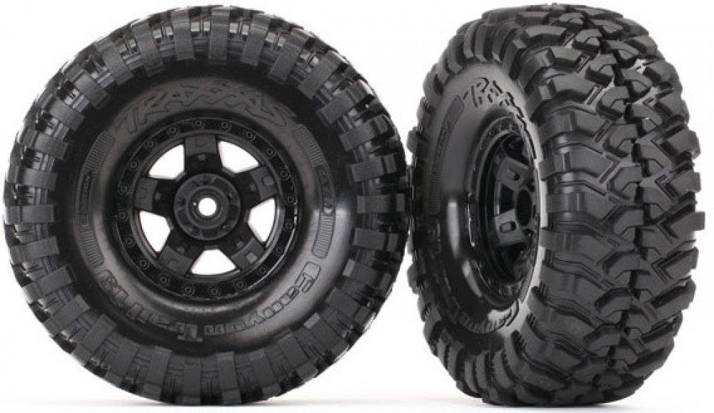 Kompletní univerzální kola pro RC modely aut TRX-4. Černé Disky TRX-4 Sport s pneumatikami Canyon Trail (2 ks v balení).