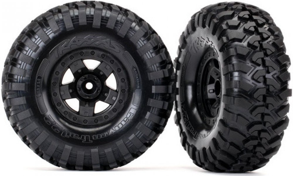 Kompletní univerzální kola pro RC modely aut TRX-4. Černé Disky TRX-4 Sport s pneumatikami Canyon Trail (2 ks v balení).