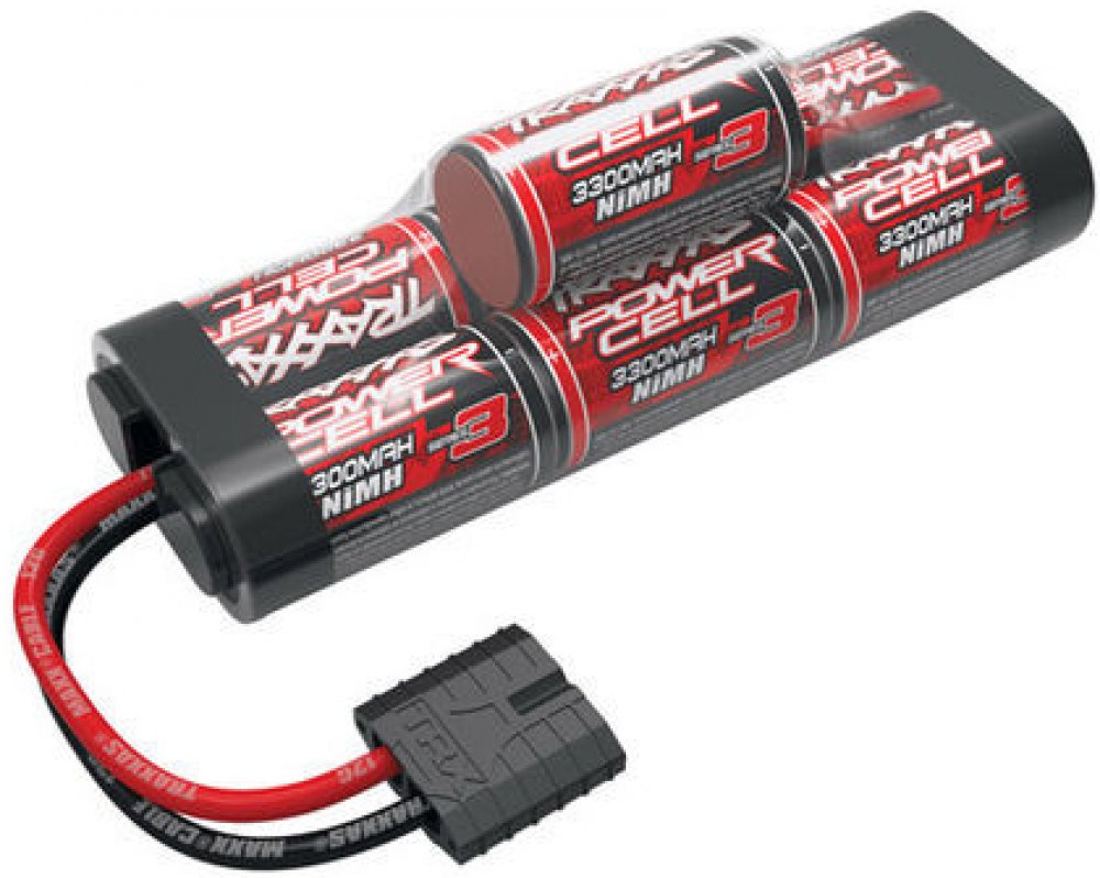 Pohonná NiMH baterie Traxxas 3300 mAh 8,4V 7 článků provedení Hump. Rozměry 24 (44) x 47 x 135 mm, hmotnost 434 g.